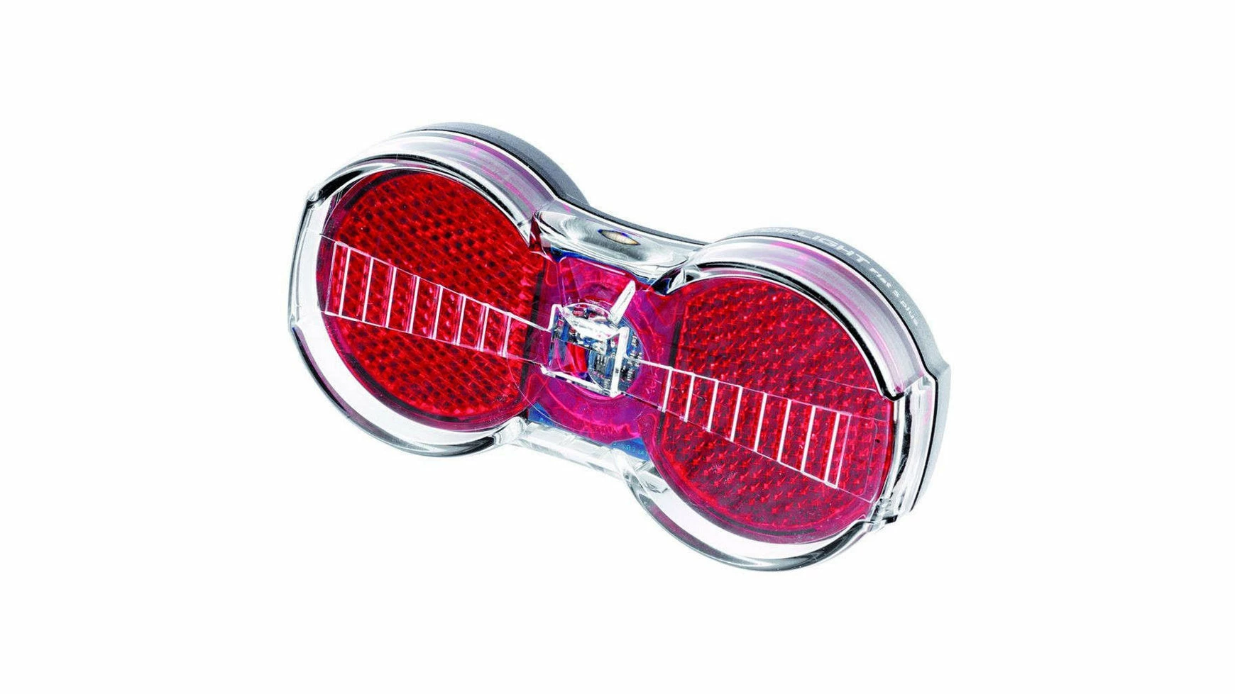 Mit der Toplight Flat Plus Rückleuchte mit LineTec, einem patentiertem Linsensystem aus einer Hochleistungs-LED, durch die ein gleichmäßiges Lichtbild erzeugt wird, kommen Sie sicher durch die Nacht. Die nachfolgenden Verkehrsteilnehmer können Sie so gut erkennen und den Abstand zu Ihnen als Fahrradfahrer deutlich besser einschätzen. Das Gehäuse ist extrem flach (ca. 117 x 50 x 20 mm), die Standlichtautomatik erfolgt über den Kondensator; es sind weder Batterien noch Akkus erforderlich. Dank des extrem hellen Lichtaustritt mit einem 320° Abstrahlwinkel bekommen Sie eine „Rundum-Sichtbarkeit“. Der rote Rückstrahler befindet sich unter einer Klarglasabdeckung; das Gewicht der Rückleuchte liegt bei ca. 65 g.