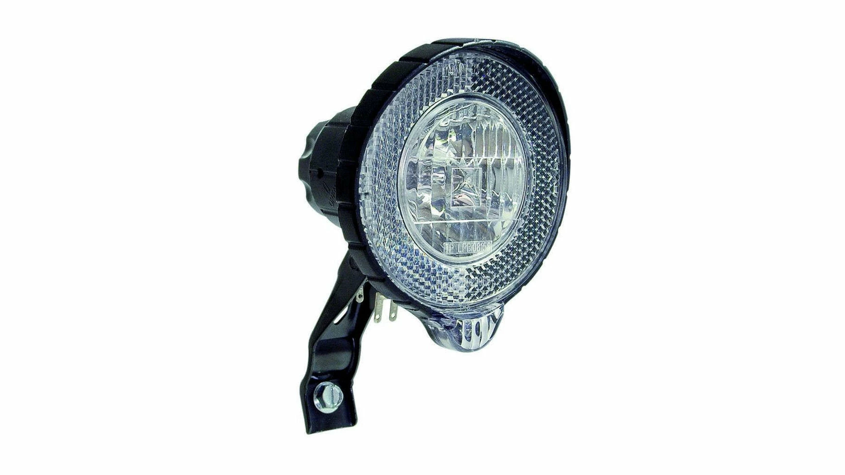 Scheinwerfer „Secu Town Halogen“ gemäß StVZO. Mit Standlichtfunktion und integriertem Frontreflektor. Ausführung mit Schalter für Nabendynamos. Kurzum: Dieser Scheinwerfer hat alles, was Sie brauchen, um sicher durch die Dunkelheit zu kommen.