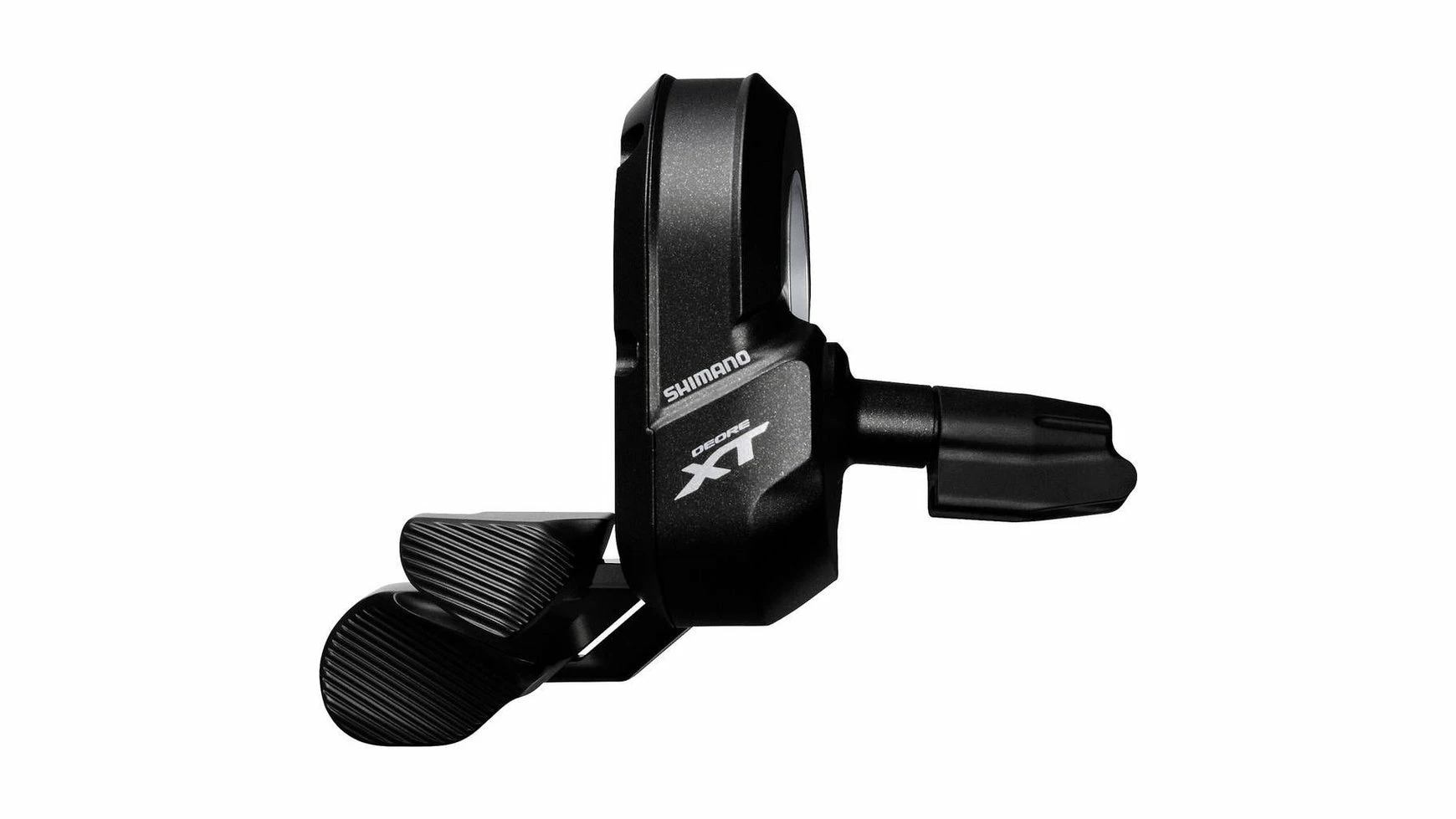 Neueste Technologie und potenziell rennentscheidende Komponenten: Shimano XT Di2 1/2×11-fach Firebolt Schalthebel SW-M8050 links.