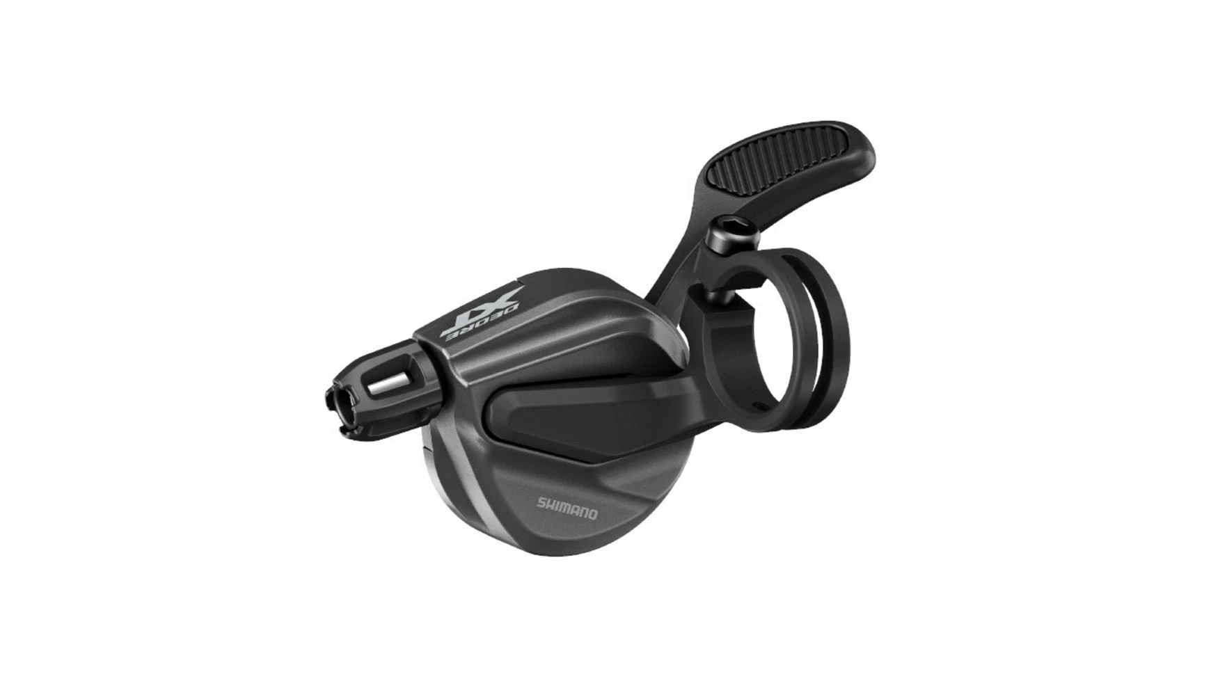 Als einer der Kontaktpunkte sind die Schalthebel eine wichtige Verbindung zwischen Fahrer und Bike. Der 2-fach Shifter ist eine komplette Neuentwicklung und besticht durch seine überragende Ergonomie und sein niedriges Gewicht. Im Gegensatz zu herkömmlichen 2-fach Shiftern kommt der M8100 mit nur einen Schalthebel aus. Um auf das große Blatt zu schalten, wird der Hebel mit dem Daumen nach vorn geschoben und rastet in dieser Position ein. Zum Herunterschalten wird die Arretierung wahlweise durch nochmaligen Daumendruck oder Zurückdrücken mit dem Zeigefinger wieder gelöst und die Kette wird sicher auf das kleine Blatt geführt. Außerdem schaltet der M8100 Schalthebel mit seinem überarbeiteten Innenleben durch Instant Release schneller. Der Schaltzug wird sofort bei Betätigen des Hebels freigegeben, wodurch der Pilot noch rascher auf sich ändernde Streckenverhältnisse reagieren kann.