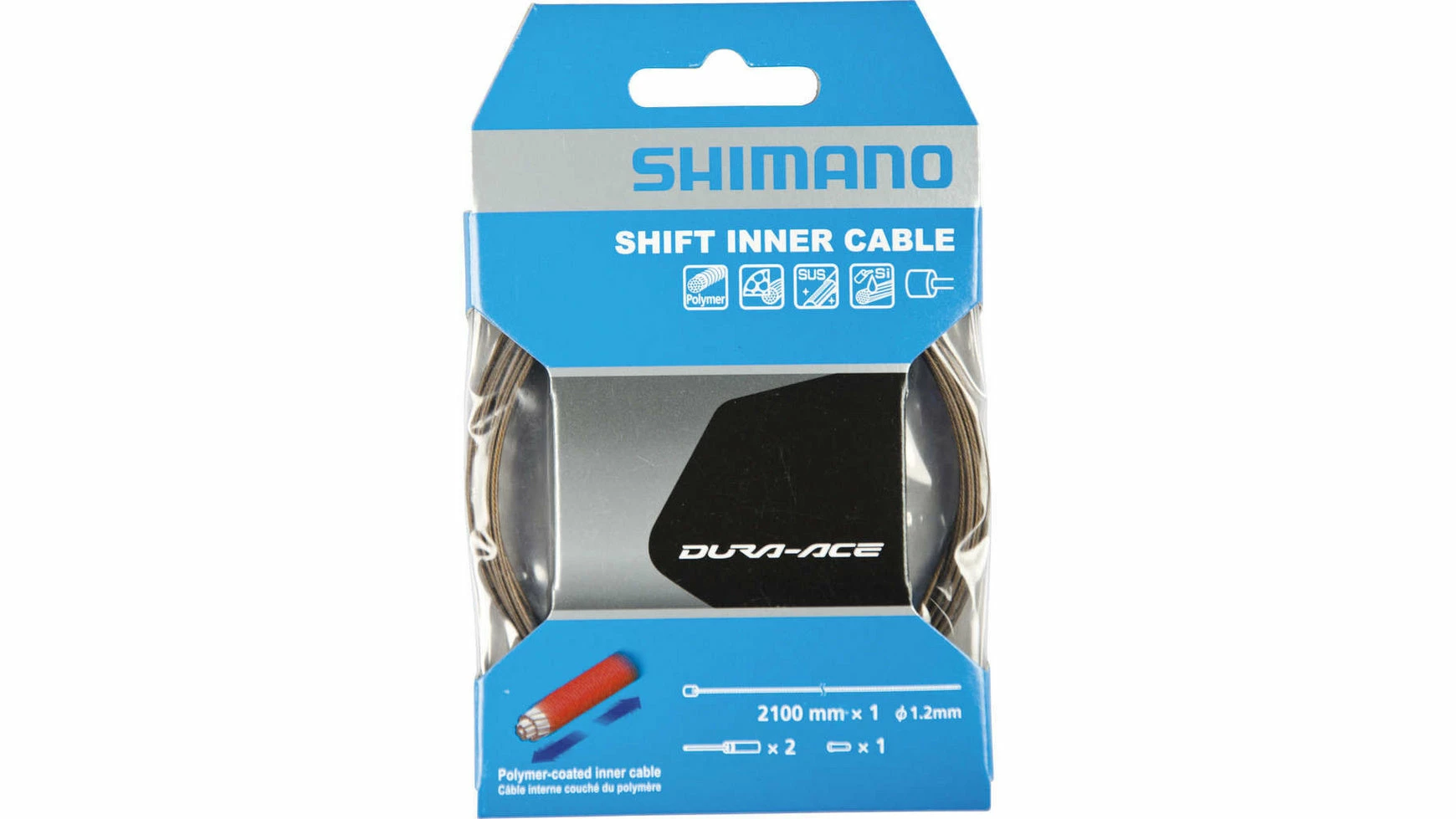 Das Geheimnis dieses Schaltzugs ist eine Polymerbeschichtung, die unter einem Mikroskop wie um den Zug gewickelte Schläuche aussieht. Dies verringert die Oberfläche, die am Liner reibt, und Fett wird länger gehalten. Die Hauptvorteile sind reduzierte Schaltkräfte und das Gefühl schnellerer Schaltvorgänge.