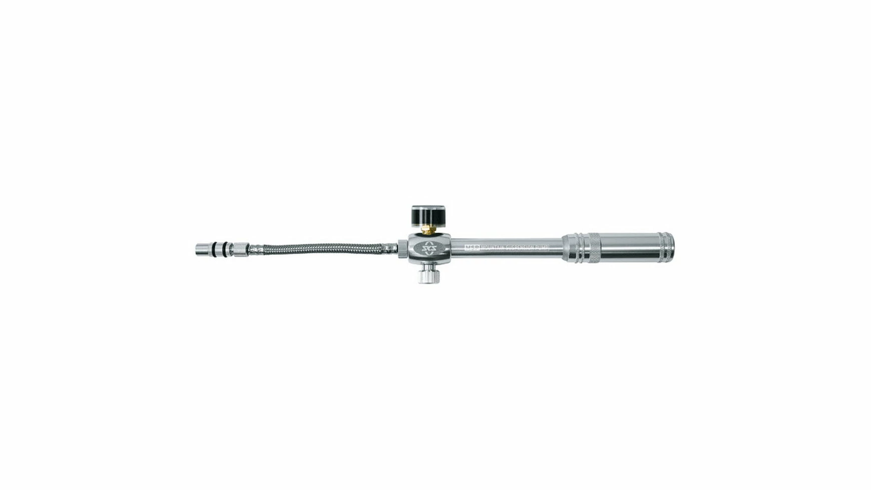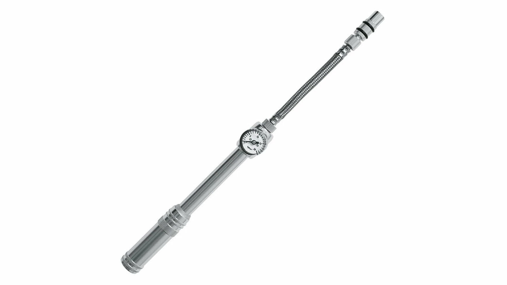 Die kleine, handliche MSP (Mountain Suspension Pump) sollrte in keinem ourenrucksack fehlen. Durch den abschraubbaren Stahlflexschlauch lässt sich das Packmaß auf ein Minimum reduzieren. Der Maximaldruck liegt bei 20 bar. Der AV-Anschluss erfolgt über eine 2-Stufen-Verschraubung, die das an- und Abschrauben ohne Druckverlust erlaubt. Über das integrierte Druckablassdrehrad lässt sich der Druck im Federelement optimal einstellen.