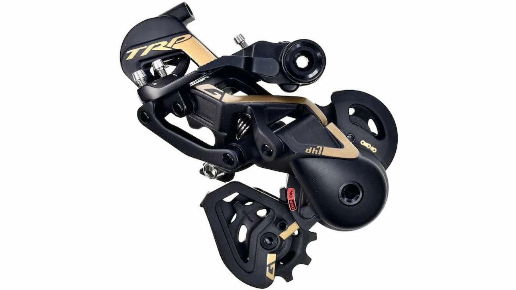 Designed für ruppige Downhills auf dem Big Bike. Die TRP DH7 Serie liebt es steil, schnell und mit viel Airtime. In drei Jahren Entwicklungszeit konzipierte TRP mit Aaron Gwin und John Hall ein innovatives Dowhill-Schaltwerk: 7 Gänge, definiertes Schaltverhalten und ein maximal verringertes Kettenschlagen. Zwei Schlüsselfeatures prädestinieren die DH7 für den ganz groben Einsatz: Hall Lock Aaron Gwins Mechaniker John Hall identifizierte die Bewegung des Schaltwerks um die Aufhängung als maßgebliche Geräuschquelle. Um dafür Abhilfe zu schaffen, entwickelte er das Hall Lock: Eine Reibungskupplung, die die Rotation um den Aufhängung des Schaltwerks unterbindet und in der Stärke verstellbar und damit immer ideal passend zum Hinterbau ist. Durch eine geeignete Einstellung wird Lärm verhindert, das Schaltwerk ist aber immer noch so frei in der Bewegung, dass bei einem Einschlag kein Schaden eintritt. Zum Wechseln des Laufrads lässt sich das Hall Lock einfach entriegeln. Ratchet Clutch Die Ratchet Clutch bietet dank ihrer großen Kupplungsfläche genug Widerstand und geringsten Verschleiß. Abhängig von Federweg und Fahrstil lässt sie sich lässt sich individuell in der Stärke verstellen und kann zum Laufradwechsel per Knopfdruck entriegelt werden.