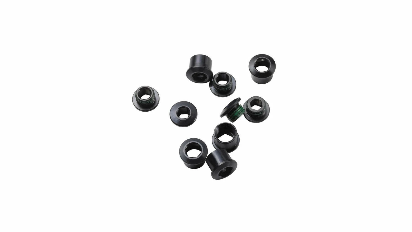 Aluminiumschrauben um Truvativ Kettenblätter zu verschrauben. Lieferumfang: 5 x Kettenblattschraube Truvativ, 5 x Hülse/Mutter Truvativ, 5 x U-Scheibe Truvativ 2mm.